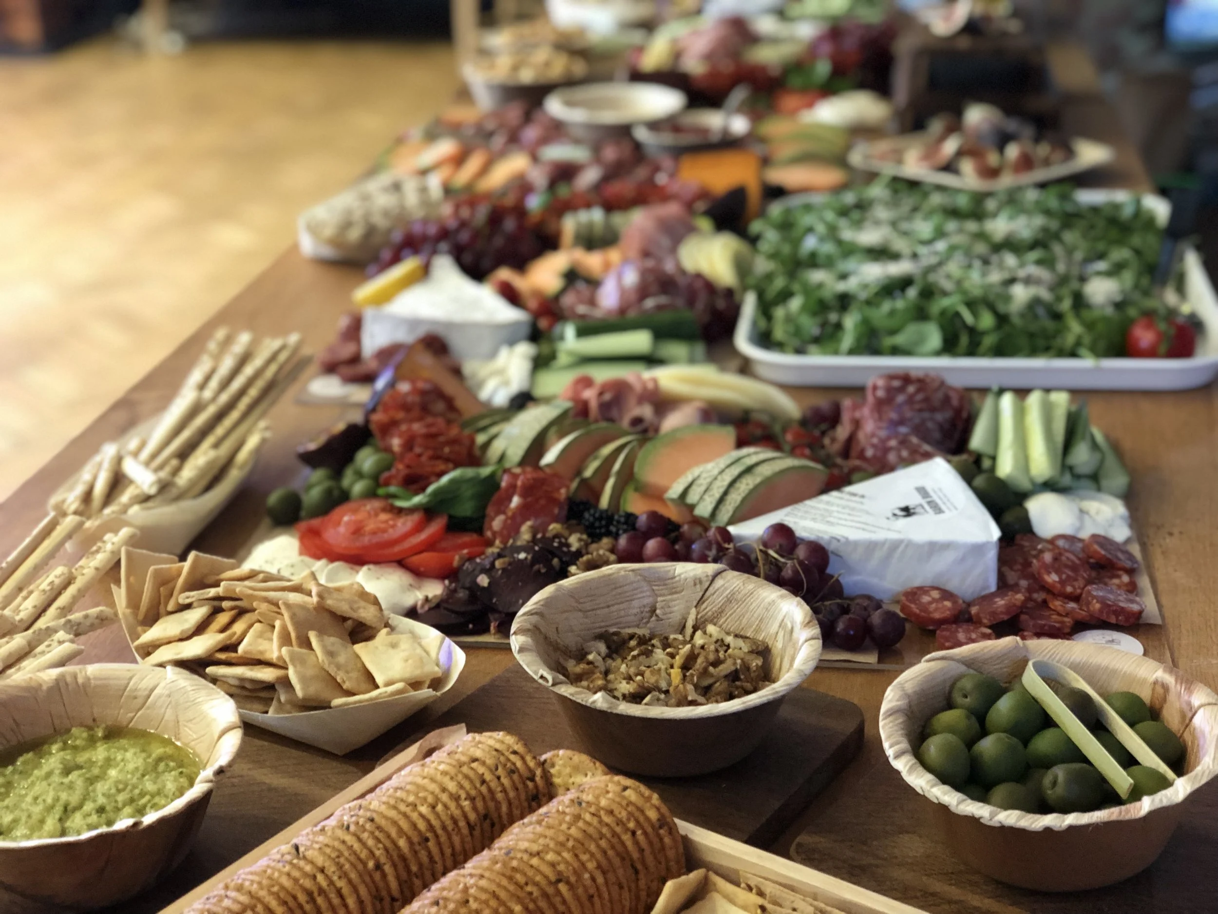 Traditional Italian Foods Including; Fennel Salami, Mortadella, Picante Salami, Prosciutto, Rosemary and Sea Salt Focaccia, Olives, Pecorino, Ciabbata, Homemade Fresh Pesto, Mozzarella, Tomato, Olive Oil & balsamico glaze. Italian Salads and accompaniments.